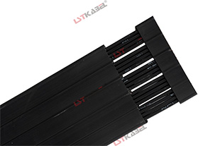 本產品為YFFB電纜,扁平結構,纜芯一字排列結構(可梅花型排列等),電纜結構簡單,良好的耐彎曲性能,厚度小,彎曲半徑小,重量輕,韌性強。具有高度柔軟、抗拉、耐磨、耐彎曲、防拖拽、防水、防油、耐寒、抗紫外線等特性。